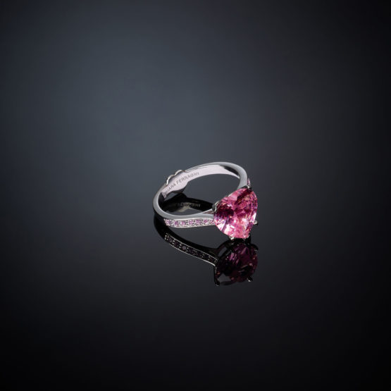 Γυναικείο δαχτυλίδι CHIARA FERRAGNI FIRST LOVE J19AVF020-No.18 ασημένιου χρώματος με σχέδιο καρδιά και ροζ πέτρες.