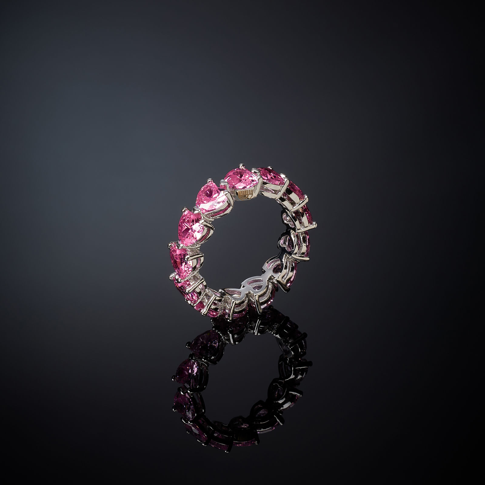 Γυναικείο δαχτυλίδι CHIARA FERRAGNI INFINITY LOVE J19AVG040-No.18 ασημένιου χρώματος με σχέδιο καρδιά και ροζ πέτρες.