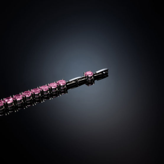 Γυναικείο βραχιόλι CHIARA FERRAGNI ασημένιου χρώματος με ροζ πέτρες. Είναι κατασκευασμένο από κράμα μετάλλων και είναι διακοσμημένο με ροζ πέτρες(16+1,5cm).