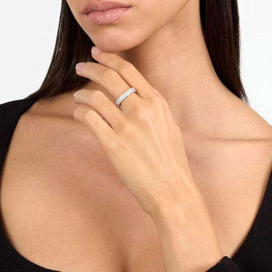 Γυναικείο δαχτυλίδι CHIARA FERRAGNI ασημένιου χρώματος. Είναι κατασκευασμένο από silver 925% και διακοσμημένο με διαφανείς πέτρες.