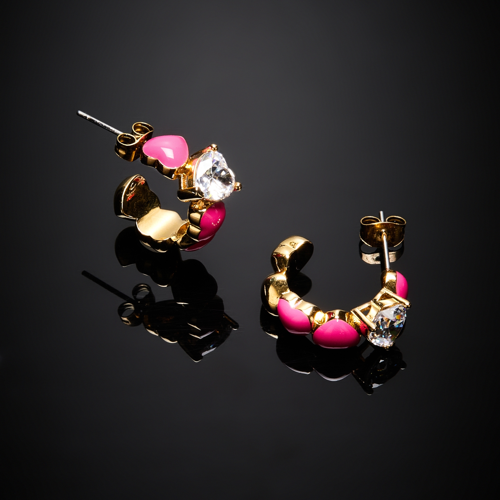 Γυναικεία σκουλαρίκια CHIARA FERRAGNI χρυσού χρώματος με ροζ καρδιές. Είναι κατασκευασμένα από κράμα μετάλλων(2cm).