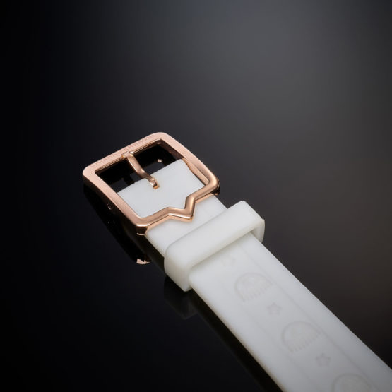 Γυναικείο ρολόι διαμέτρου 36mm με μηχανισμό QUARTZ ακριβείας. Έχει λευκό καντράν με επίχρυσους δείκτες και λευκές λεπτομέρειες και ένδειξη ημερομηνίας. Η κάσα του είναι επίχρυση από ανοξείδωτο ατσάλι και κρύσταλλο από ορυκτό κρύσταλλο ειδικής σκλήρυνσης. Έχει λουράκι από καουτσούκ, λευκού χρώματος με κούμπωμα τοκάς. Είναι αδιάβροχο (5 ΑΤΜ).