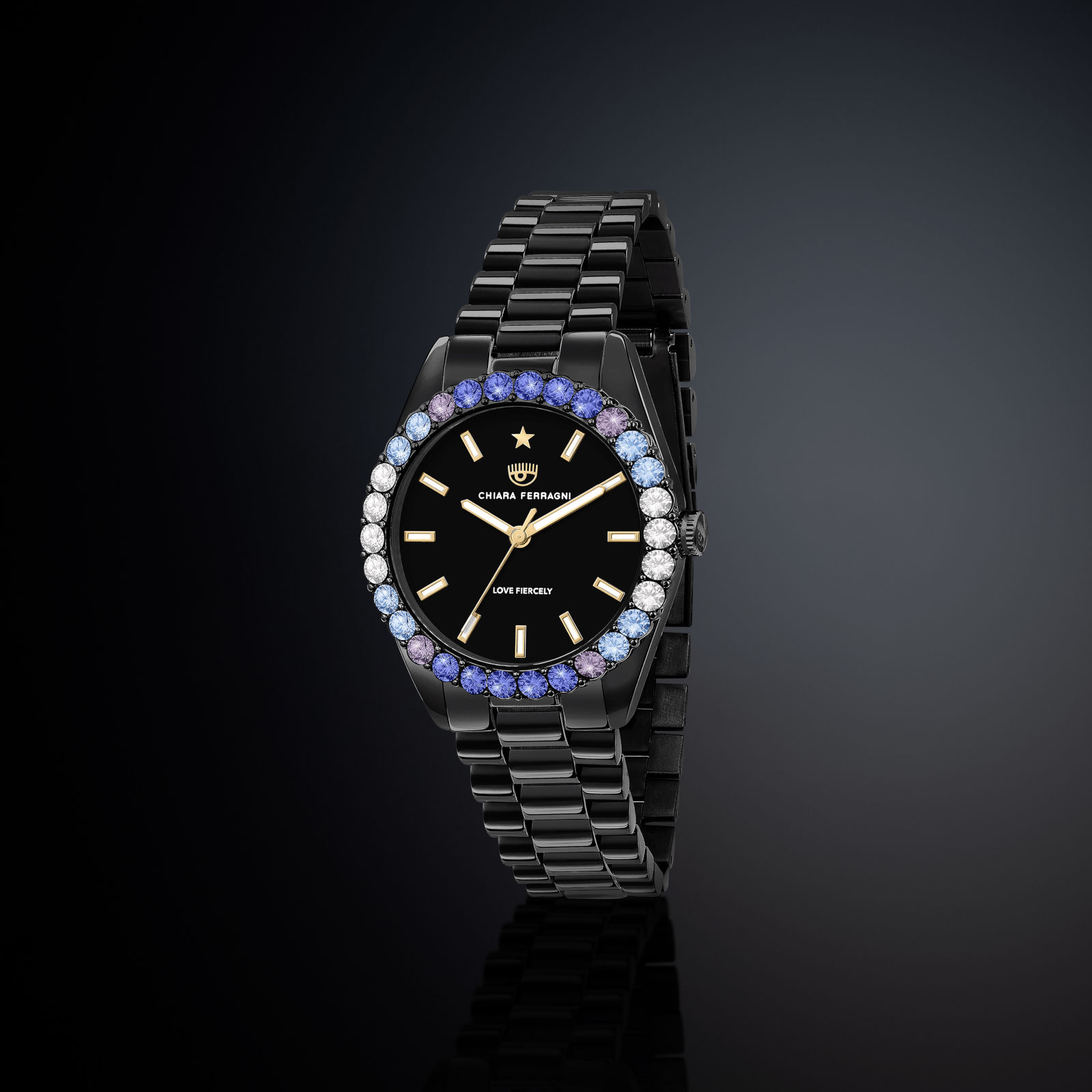 Γυναικείο ρολόι CHIARA FERRAGNI EVERYDAY R1953100502 διαμέτρου 34mm, με μηχανισμό QUARTZ ακριβείας, μαύρο καντράν, κάσα και μπρασελέ από ανοξείδωτο ατσάλι.