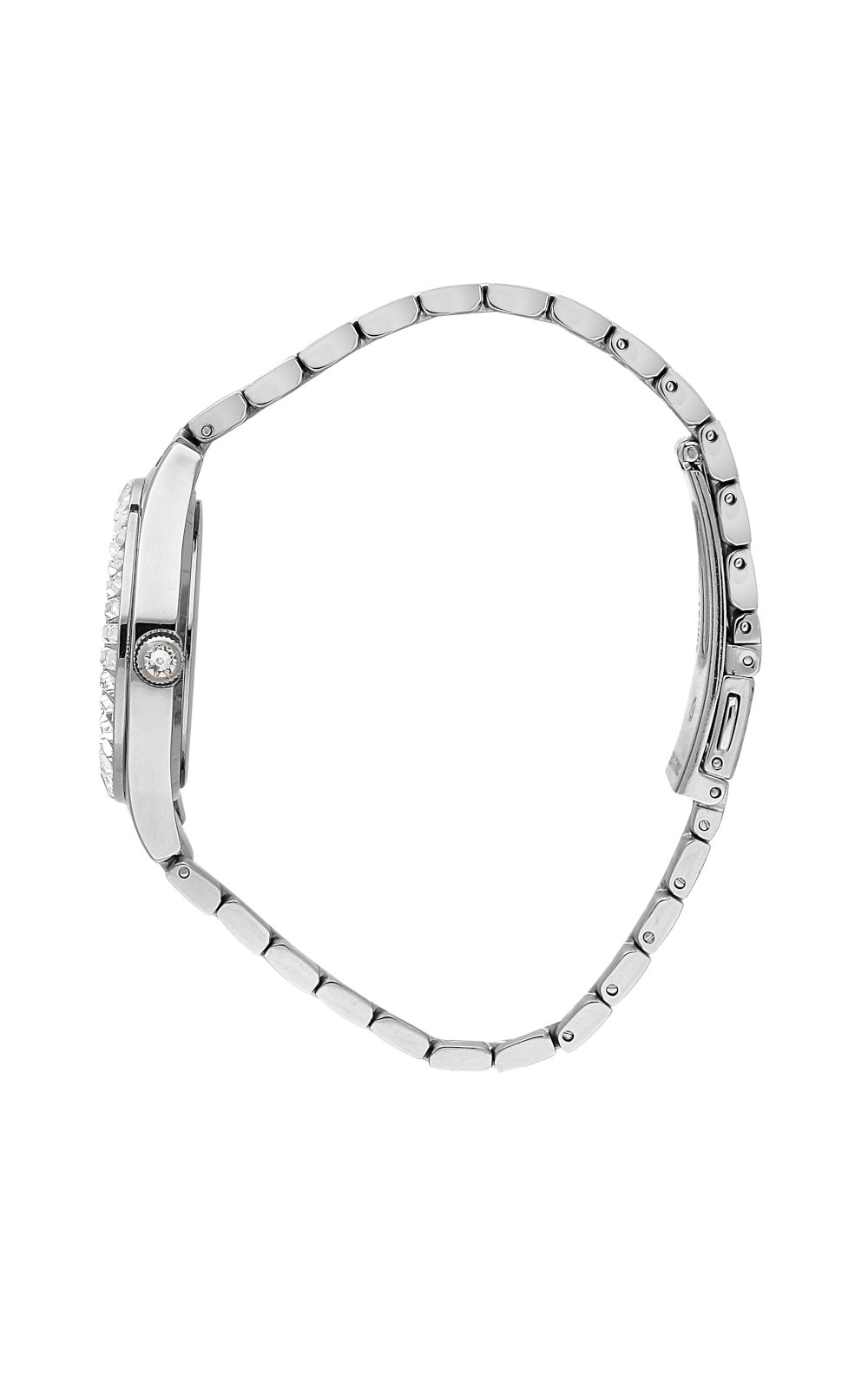 Γυναικείο ρολόι διαμέτρου 32mm με μηχανισμό QUARTZ ακριβείας. Έχει ασημένιο καντράν διακοσμημένο με κρυστάλλους, ασημένιους δείκτες και λεπτομέρειες. Η κάσα του είναι από ανοξείδωτο ατσάλι διακοσμημένη με κρύσταλλα και κρύσταλλο από ορυκτό κρύσταλλο ειδικής σκλήρυνσης. Έχει μπρασελέ από ανοξείδωτο ατσάλι με κούμπωμα ασφαλείας. Είναι αδιάβροχο (5 ΑΤΜ).