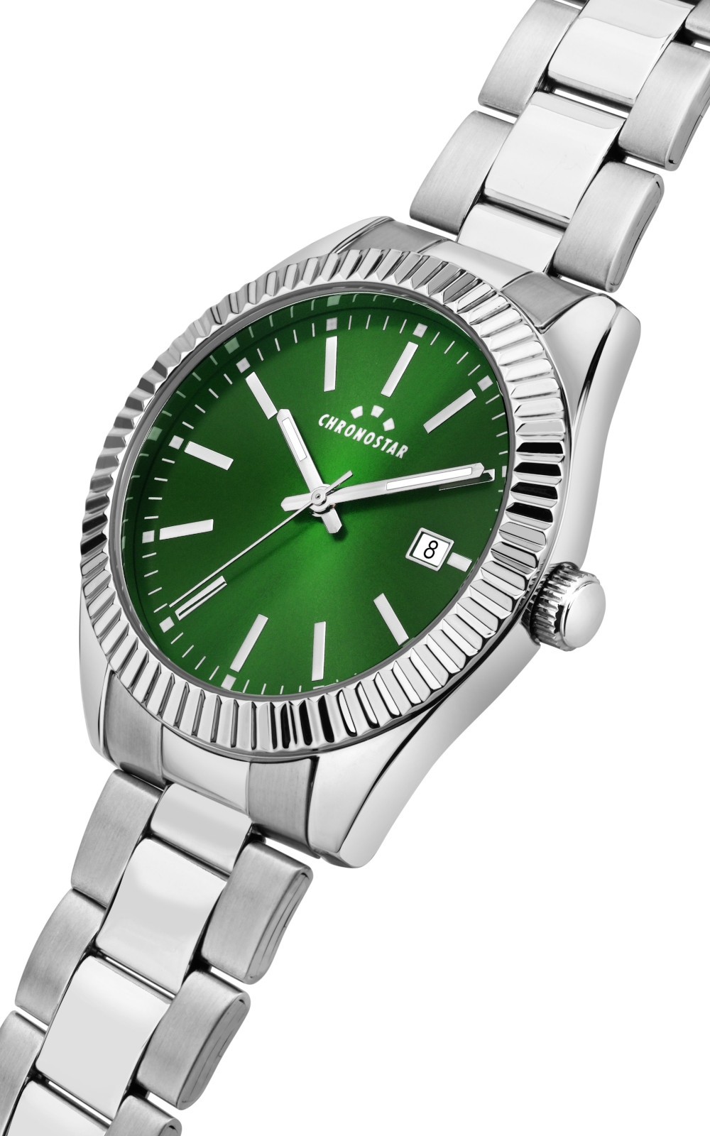 Ανδρικό ρολόι CHRONOSTAR DAILY R3753312010 διαμέτρου 41mm, με μηχανισμό QUARTZ ακριβείας, πράσινο καντράν, μεταλλική κάσα και μπρασελέ.
