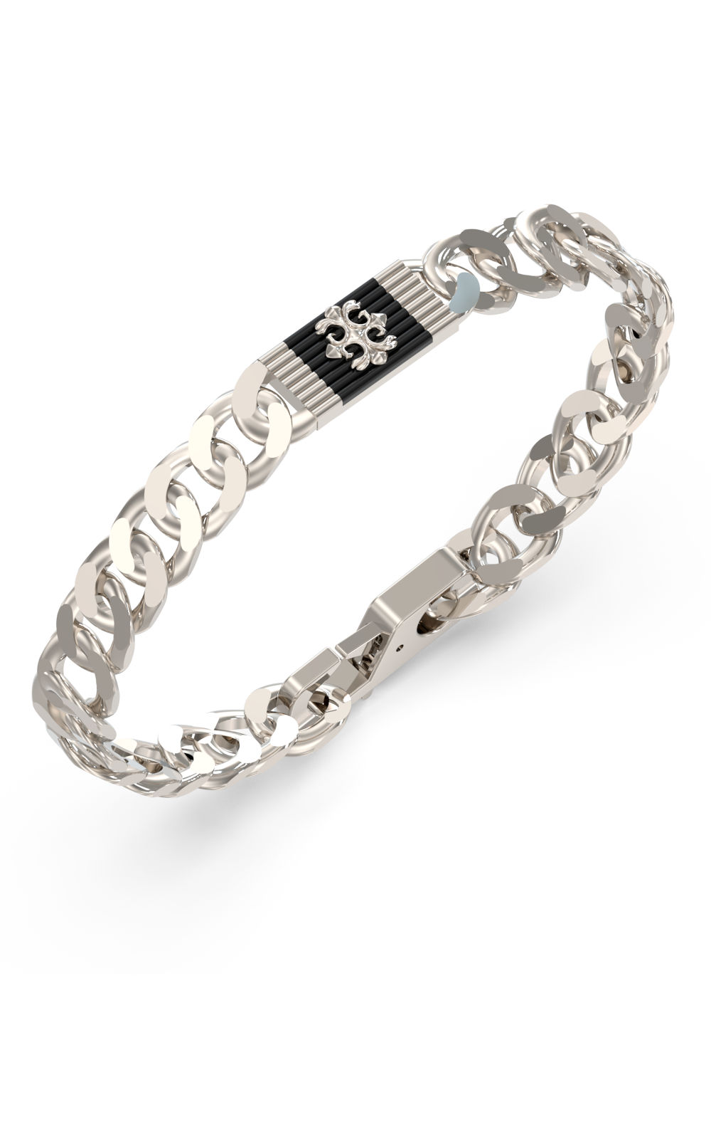 Ανδρικό βραχιόλι GUESS STEEL, ασημένιο με μαύρο σχέδιο(21cm).
