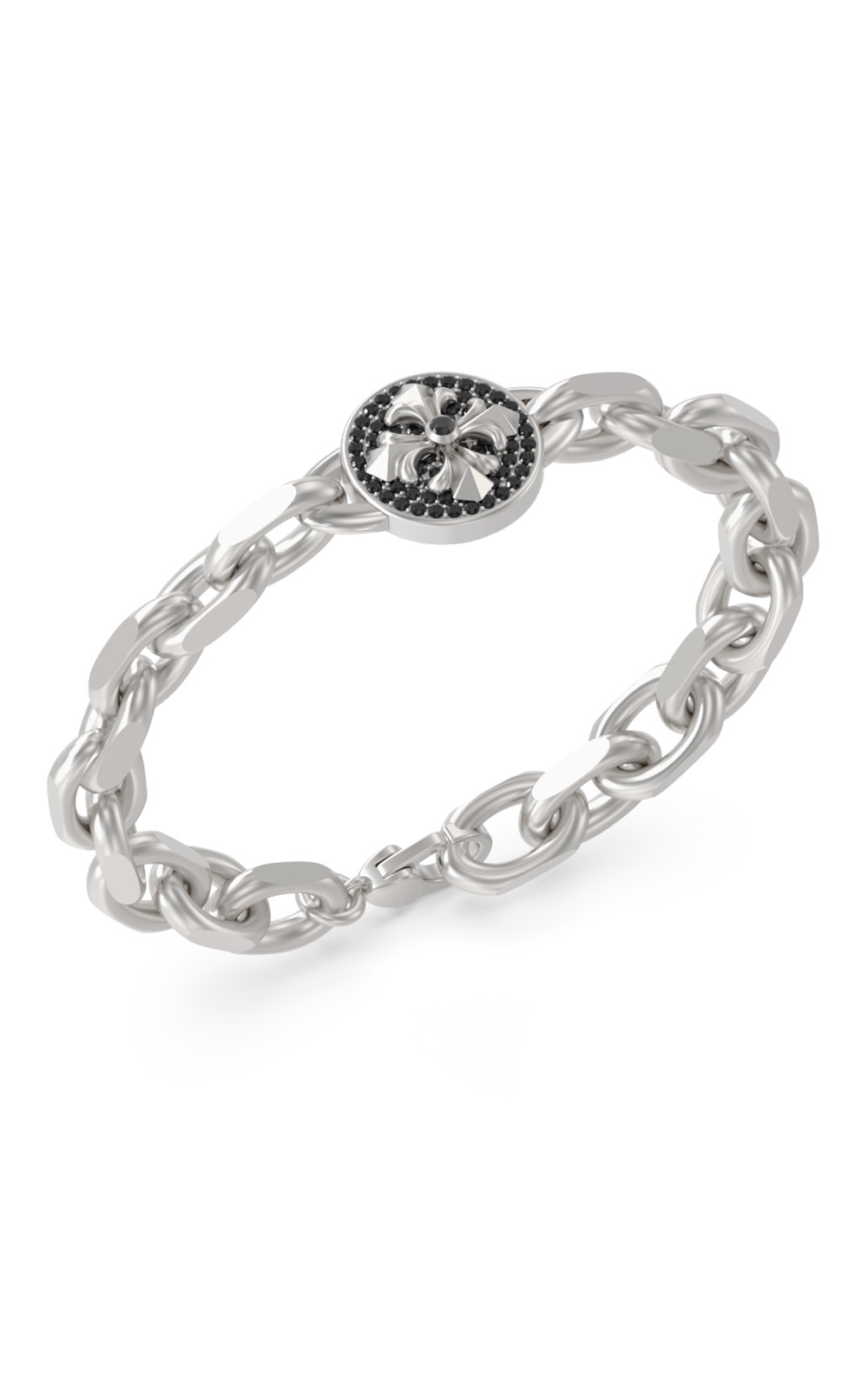 Ανδρικό βραχιόλι GUESS STEEL, ασημένιου χρώματος με σχέδιο και μαύρες πέτρες(21cm).