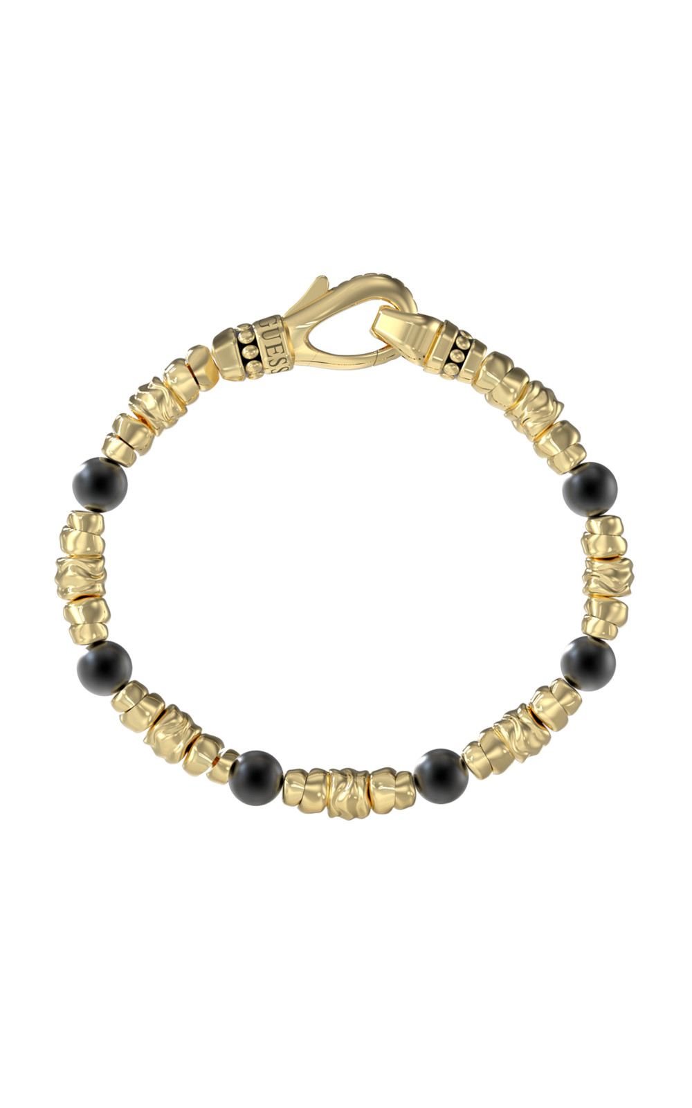 Ανδρικό βραχιόλι GUESS STEEL χρυσό με μαύρες χάντρες και λογότυπο(21cm).