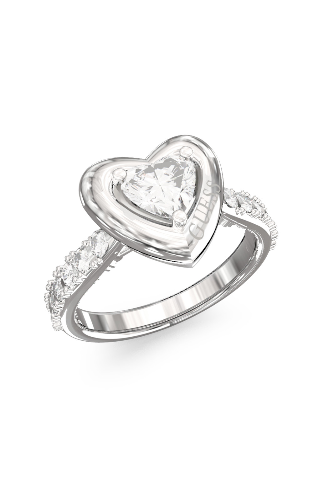 Γυναικείο δαχτυλίδι GUESS STEEL BELOVED JUBR06018JWRH-No.54 ασημένιου χρώματος με καρδιά, με πέτρες και λογότυπο