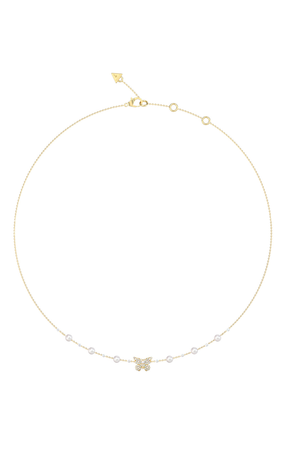 Γυναικείο κολιέ GUESS STEEL χρυσό, με σχέδιο πεταλούδα με πέρλες(40,64-45,72cm).