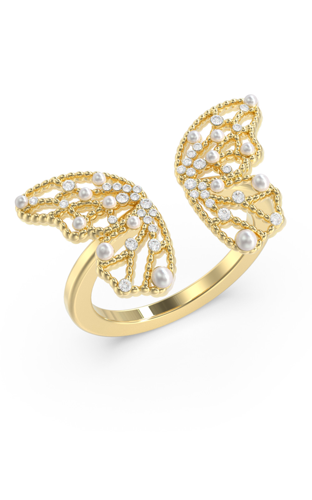 Γυναικείο δαχτυλίδι GUESS STEEL BORBOLETA JUBR06118JWYG-No.52 χρυσού χρώματος με σχέδιο πεταλούδα με πέρλες.