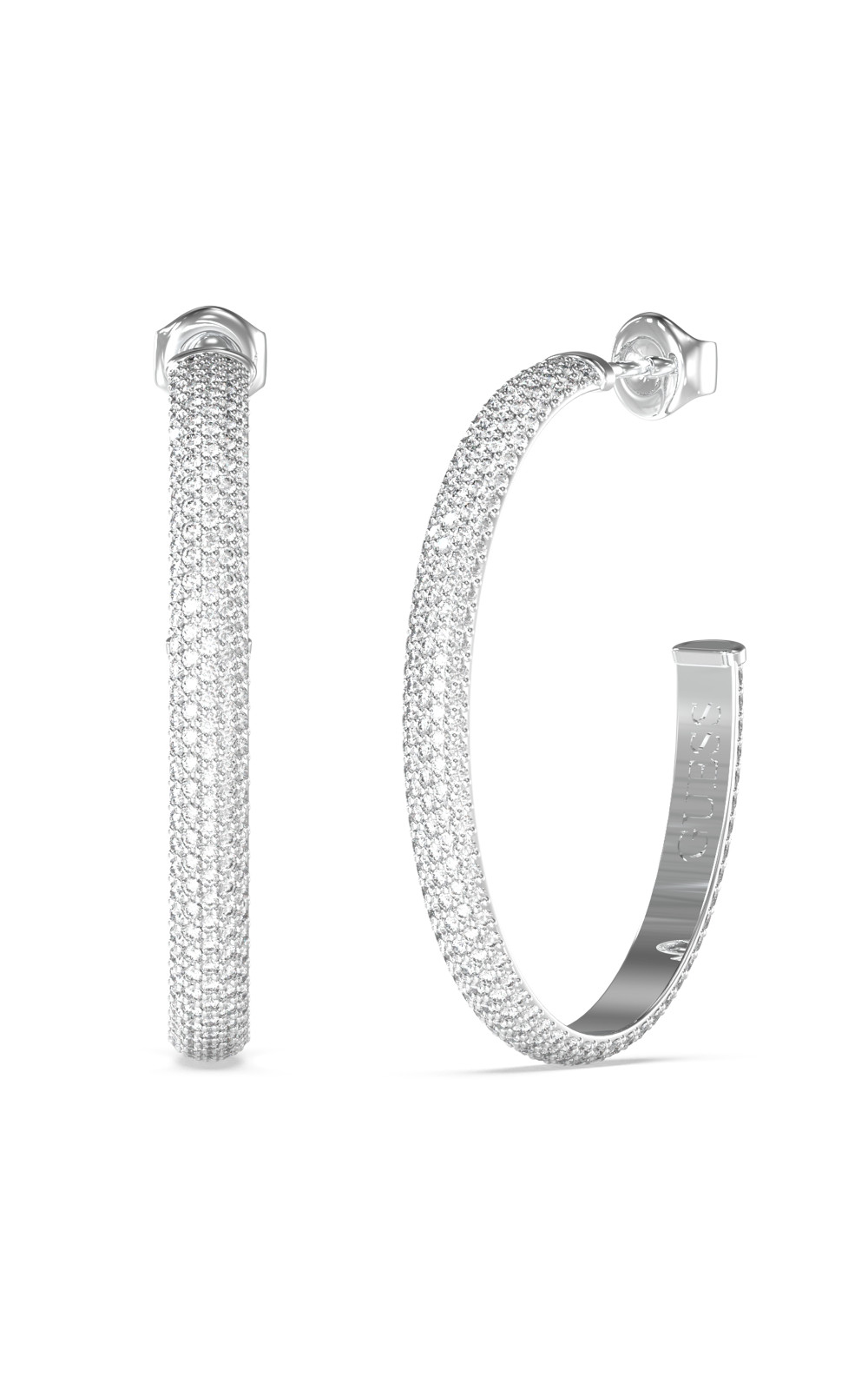 Γυναικεία σκουλαρίκια GUESS STEEL κρίκοι, ασημένια με πέτρες και λογότυπο(4,2cm).