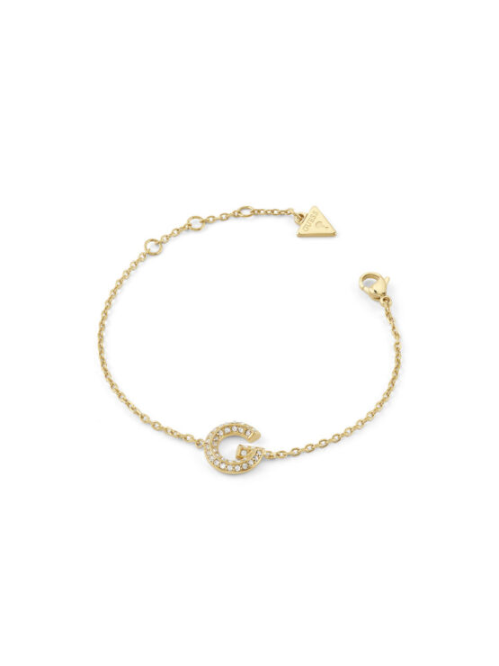 Γυναικείο βραχιόλι GUESS STEEL G CRYSTAL JUBB05442JWYGL, χρυσό με λογότυπο με πέτρες(21cm).