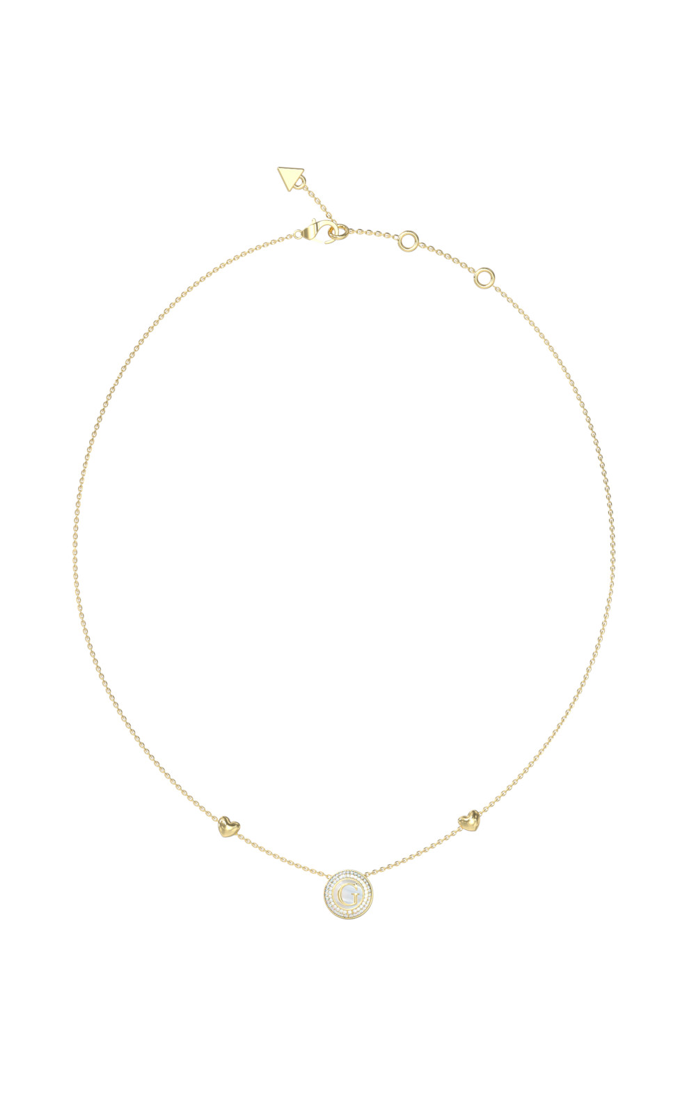 Γυναικείο κολιέ GUESS STEEL χρυσό, με καρδιές και λογότυπο με πέτρες(40,64-45,72cm).