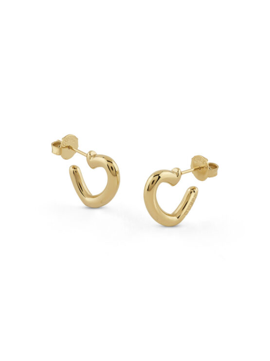 Γυναικεία σκουλαρίκια GUESS STEEL, χρυσά σε σχέδιο καρδιές με λογότυπο(1,5cm).