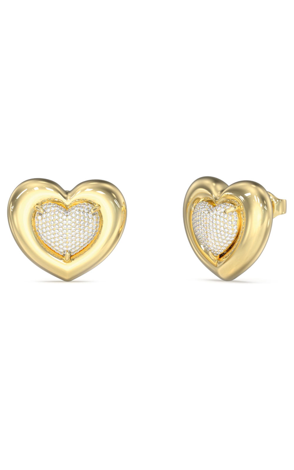 Γυναικεία σκουλαρίκια GUESS STEEL, χρυσά με σχέδιο καρδιά με διαφανείς πέτρες(2,2cm).