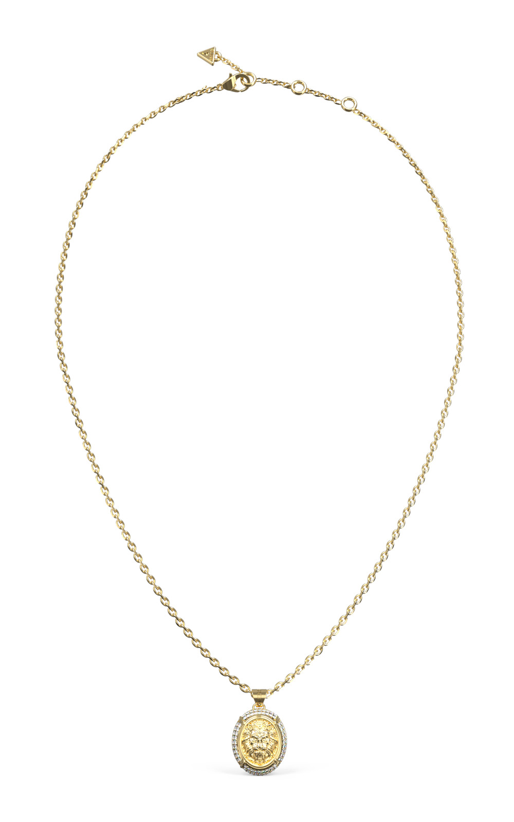 Γυναικείο κολιέ GUESS STEEL χρυσό, με σχέδιο λιοντάρι, πέτρες και λογότυπο(40,64-45,72cm).
