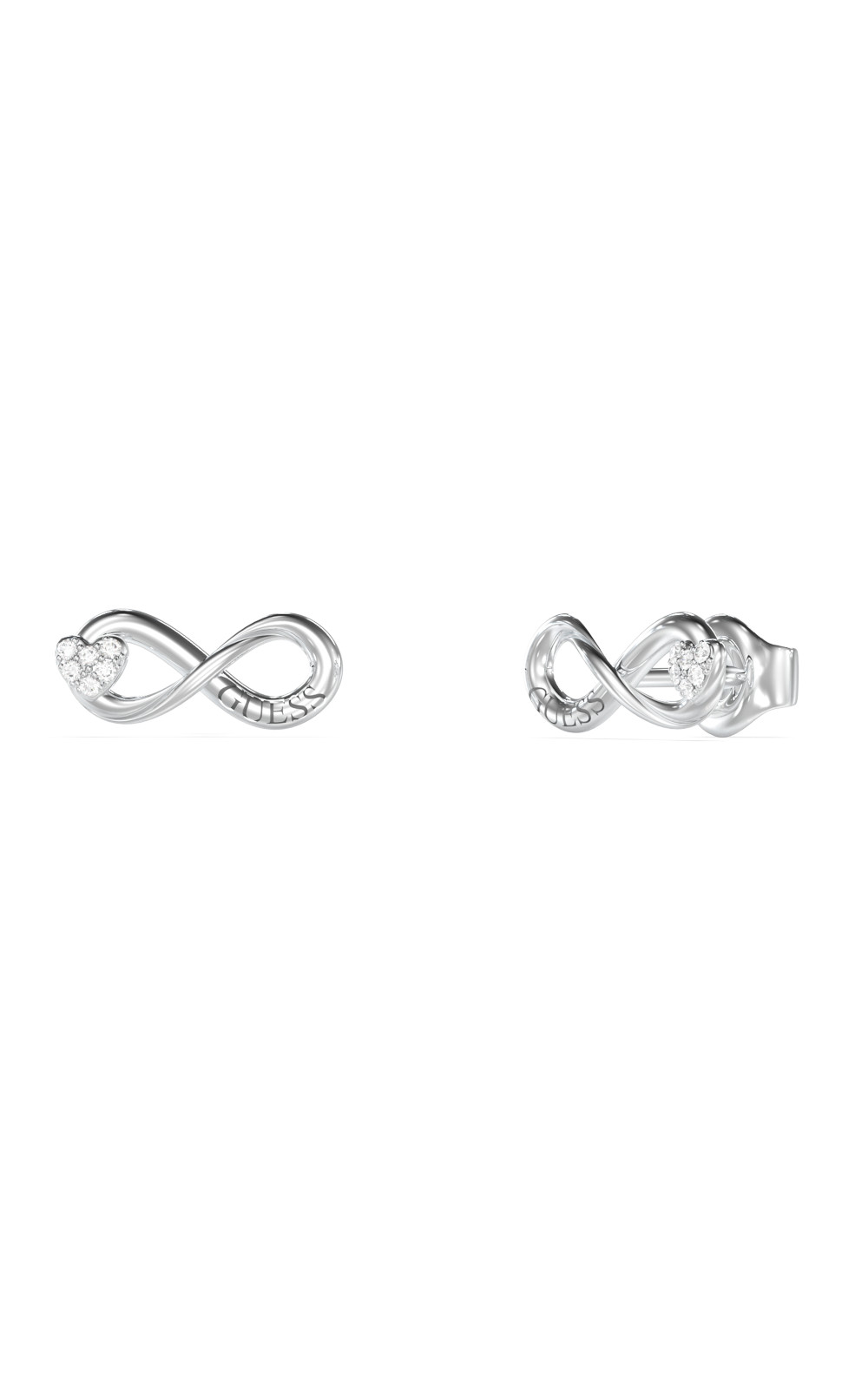 Γυναικεία σκουλαρίκια GUESS STEEL, ασημένια με σχέδιο άπειρο με πέτρες και λογότυπο(1,5cm).