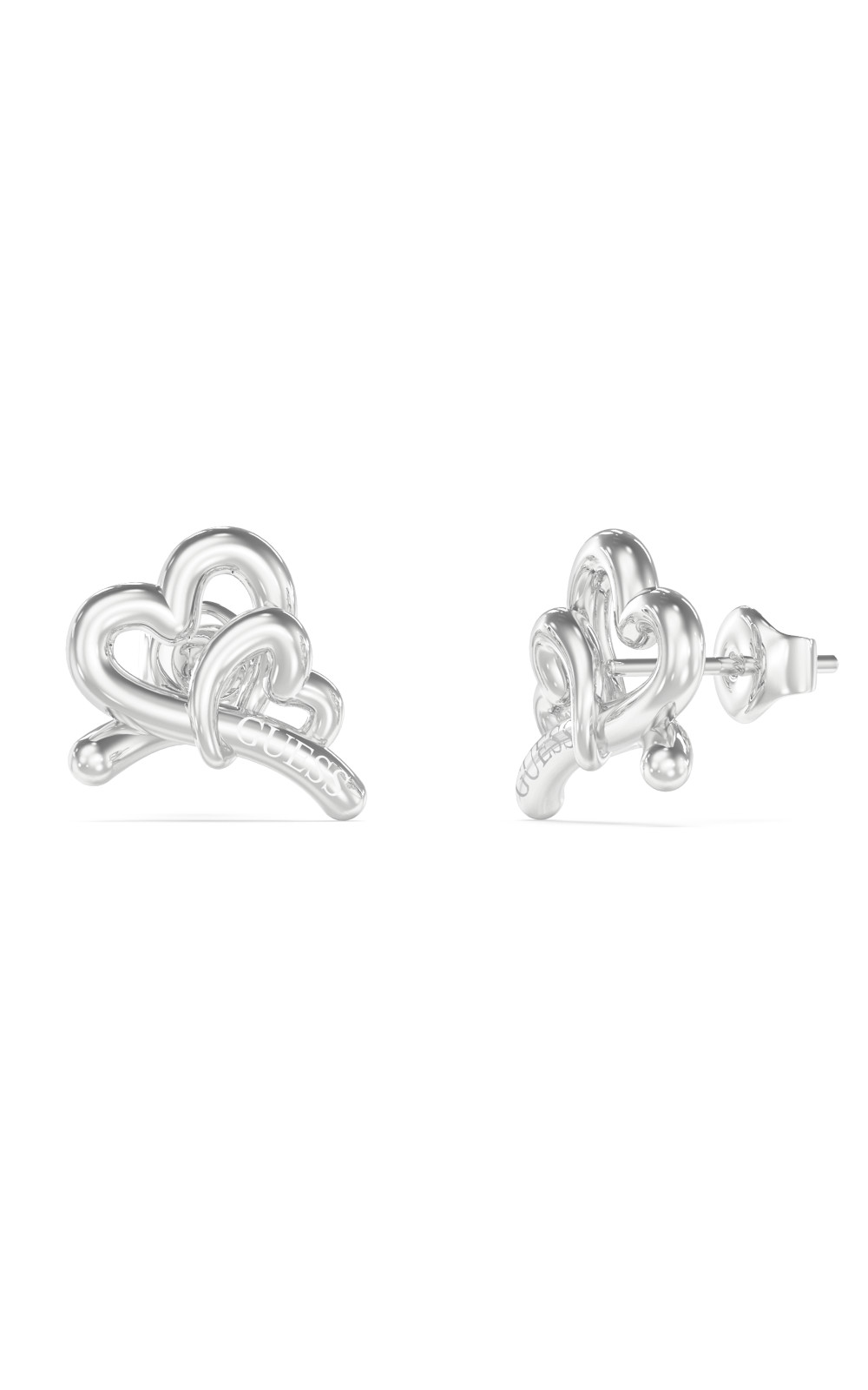 Γυναικεία σκουλαρίκια GUESS STEEL LOVE BITES JUBE06058JWRHT/U, ασημένια με καρδιές και λογότυπο(1,4cm).