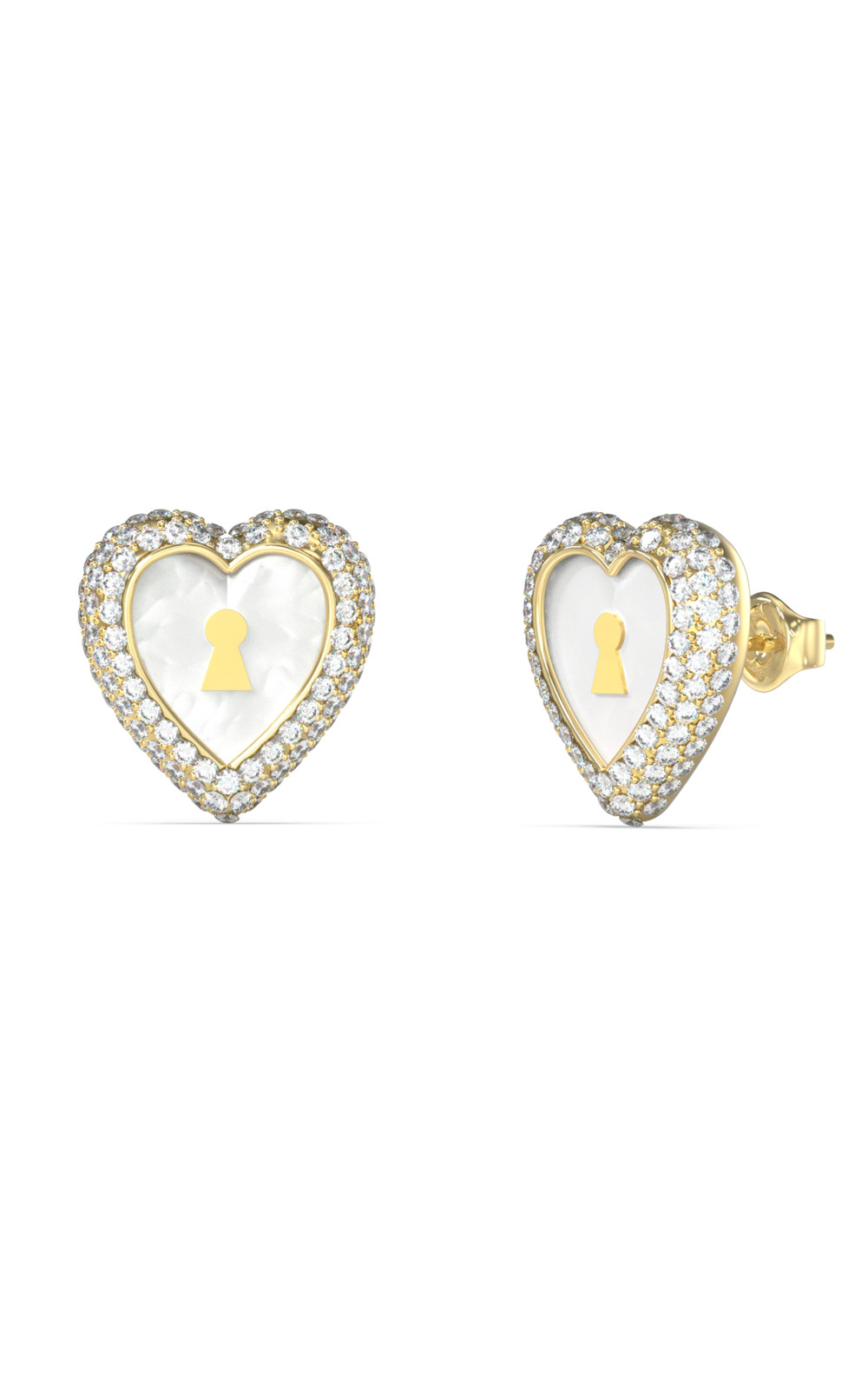 Γυναικεία σκουλαρίκια GUESS STEEL LOVE BITES JUBE06065JWYGT/U, χρυσά με καρδιές και πέτρες(1,2cm).