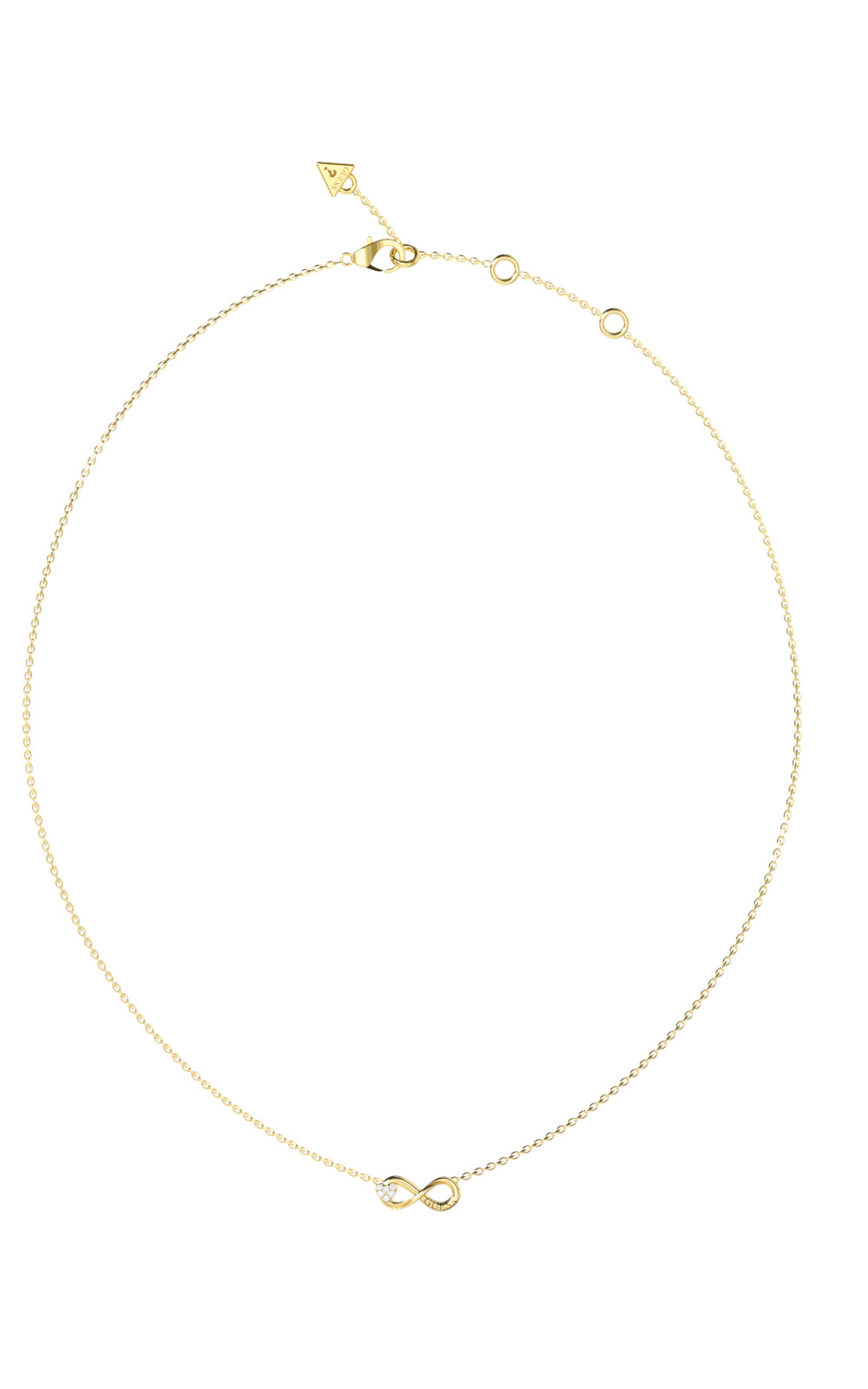 Γυναικείο κολιέ GUESS STEEL χρυσό, με σχέδιο άπειρο, πέτρες και λογότυπο(40,64-45,72cm).