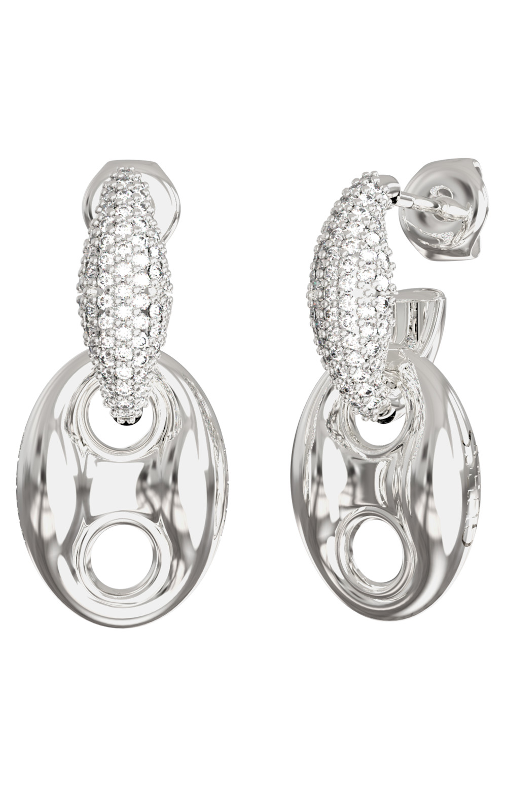 Γυναικεία σκουλαρίκια GUESS STEEL, ασημένια με πέτρες και λογότυπο(2,5cm).