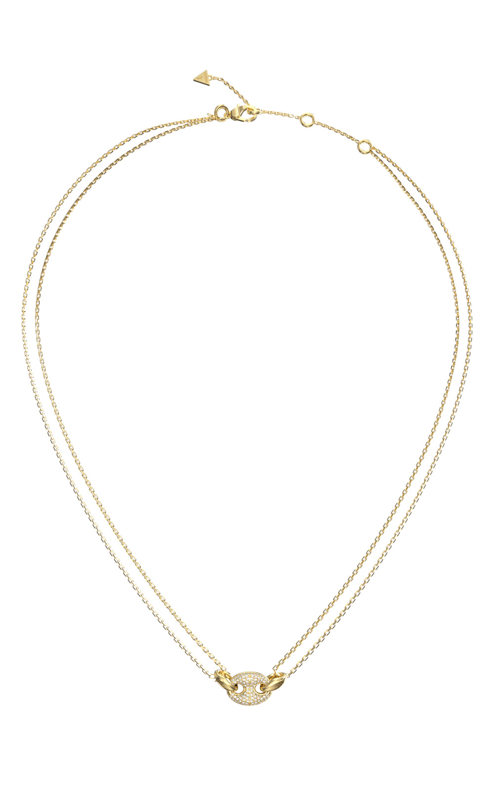 Γυναικείο κολιέ GUESS STEEL χρυσό, με σχέδιο διπλή αλυσίδα και πέτρες(40,64-45,72cm).