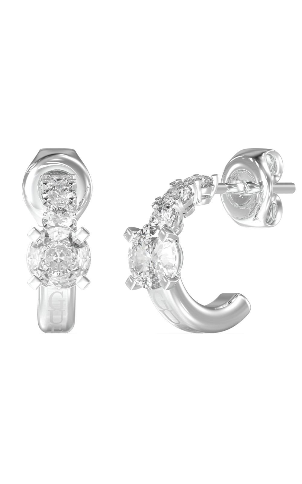 Γυναικεία σκουλαρίκια GUESS STEEL κρίκοι, ασημένιοι με πέτρες(1,2cm).