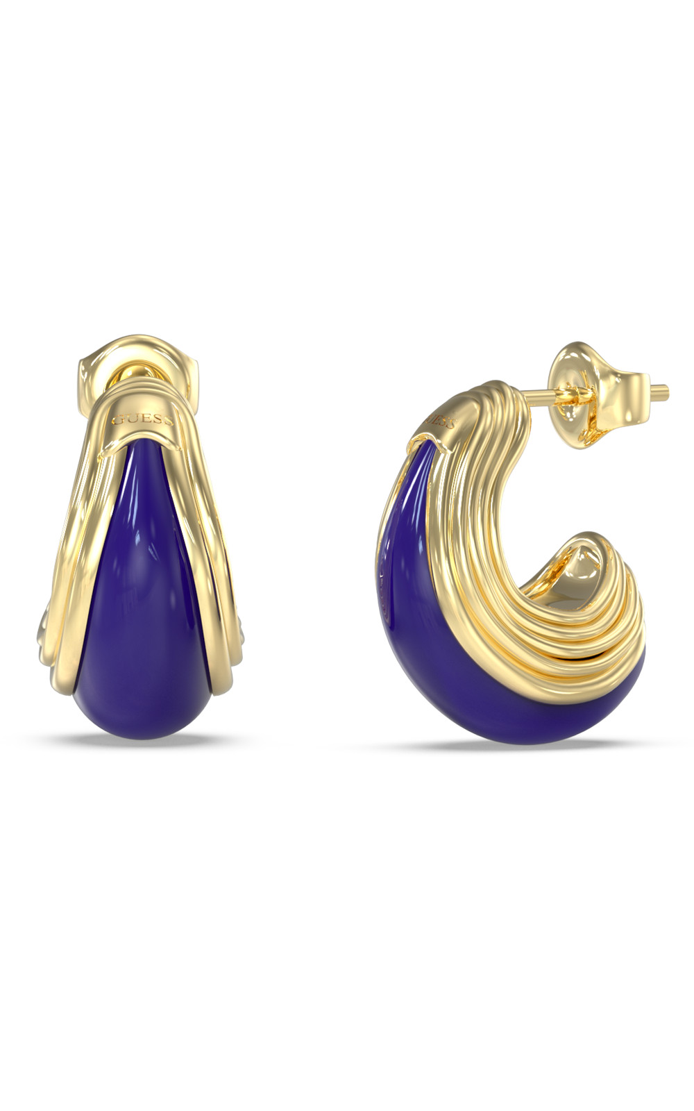 Γυναικεία σκουλαρίκια GUESS STEEL κρίκοι, χρυσοί δίχρωμοι με μπλε χρώμα και λογότυπο(2cm).