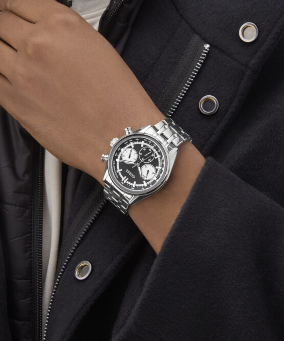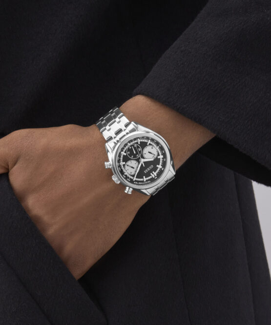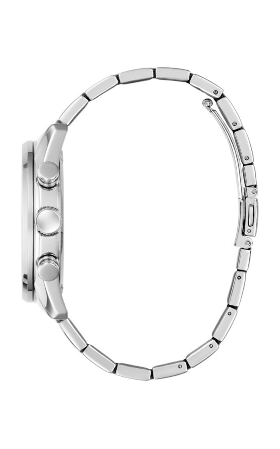 Ανδρικό ρολόι διαμέτρου 44mm με μηχανισμό QUARTZ Multifuction ακριβείας. Έχει μαύρο καντράν με ασημένιους δείκτες και λεπτομέρειες. Η κάσα του είναι από ανακυκλωμένο ατσάλι, με κρύσταλλο από ορυκτό κρύσταλλο ειδικής σκλήρυνσης. Έχει ασημί μπρασελέ από ανακυκλωμένο ατσάλι και κούμπωμα ασφαλείας. Είναι αδιάβροχο (5ΑΤΜ)