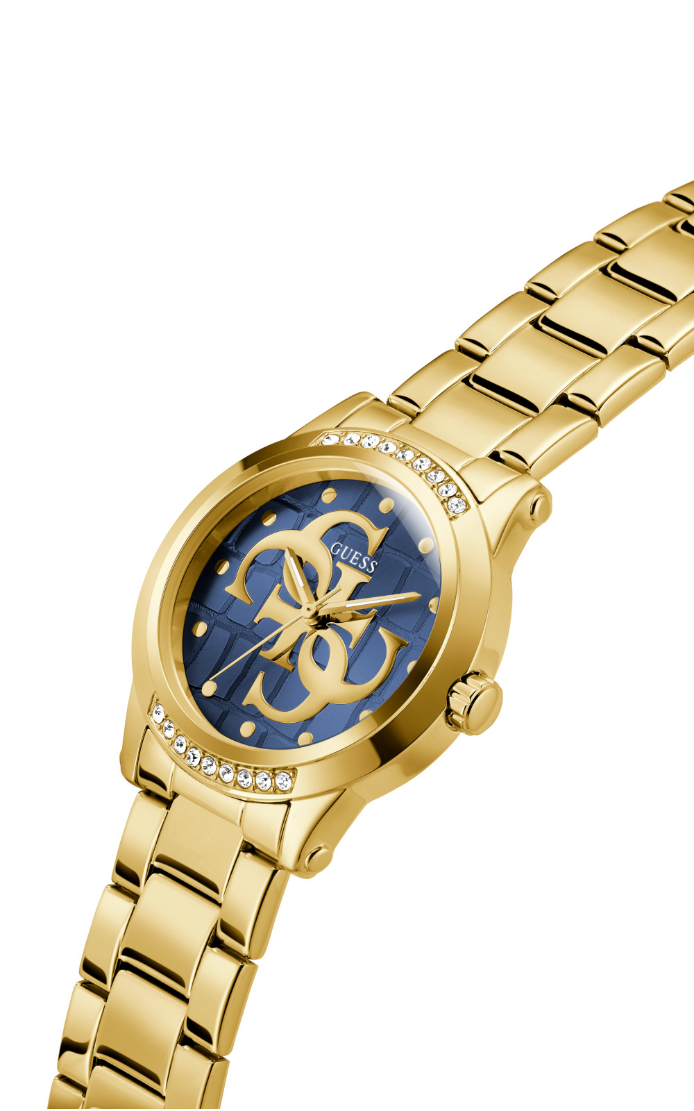 Γυναικείο ρολόι GUESS ANNETTE GW0861L6 διαμέτρου 36mm, με μηχανισμό QUARTZ ακριβείας, μπλε καντράν, κάσα και μπρασελέ από ανακυκλωμένο ατσάλι.