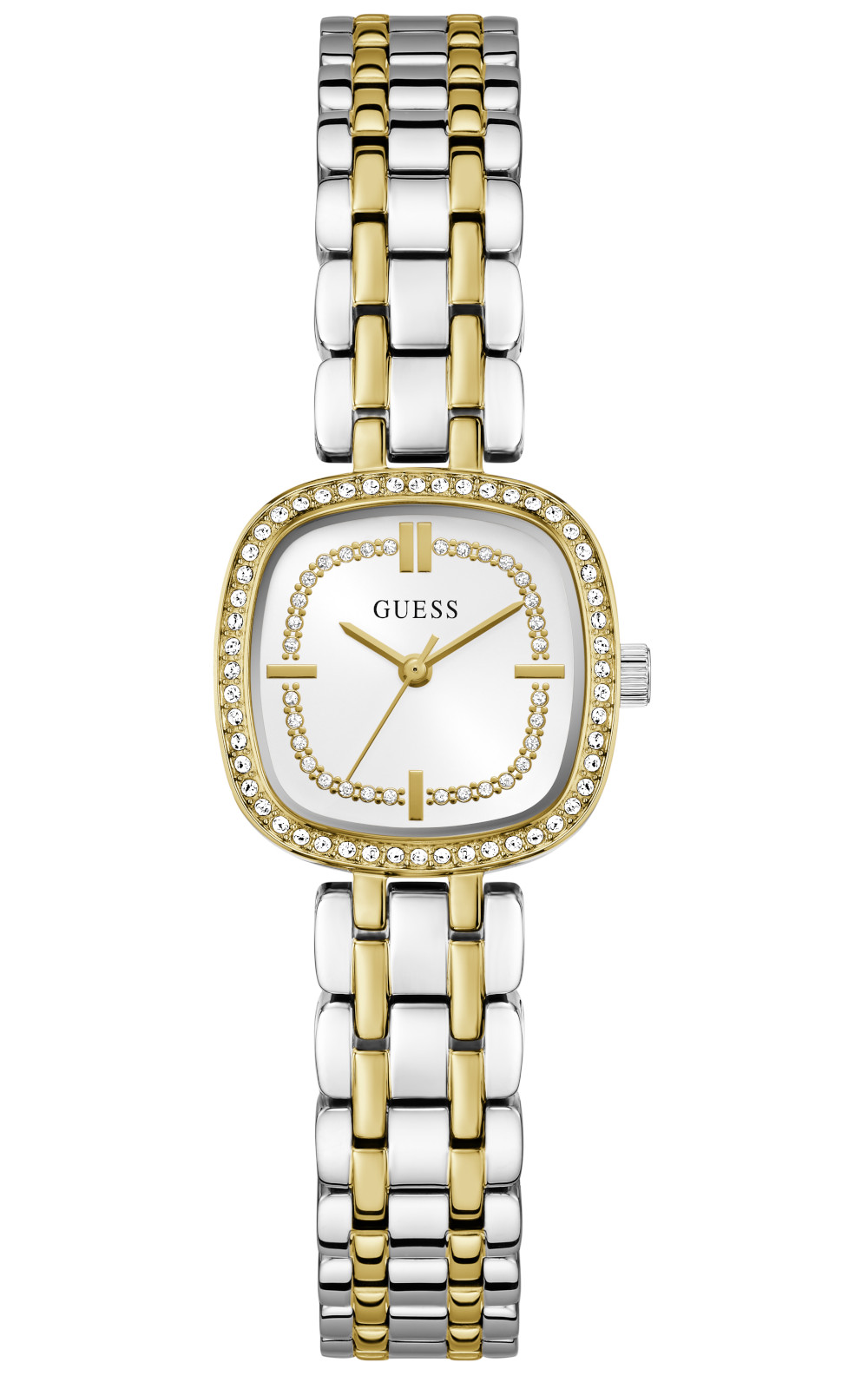 Γυναικείο ρολόι GUESS HAZEL GW1018L3 διαμέτρου 25mm, με μηχανισμό QUARTZ ακριβείας, λευκό καντράν,κάσα και μπρασελέ από ανακυκλωμένο ατσάλι και κούμπωμα G-LINK.