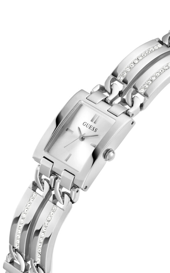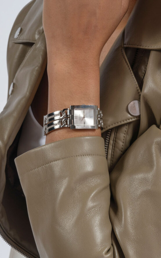 Γυναικείο ρολόι διαμέτρου 24mm με μηχανισμό QUARTZ ακριβείας. Έχει ασημένιο καντράν με ασημένιους δείκτες και λεπτομέρειες. Η κάσα του είναι από ανοξείδωτο ατσάλι με κρύσταλλο από ορυκτό κρύσταλλο ειδικής σκλήρυνσης. Έχει μπρασελέ από ανοξείδωτο ατσάλι με κούμπωμα G-LINK. Δεν είναι αδιάβροχο.