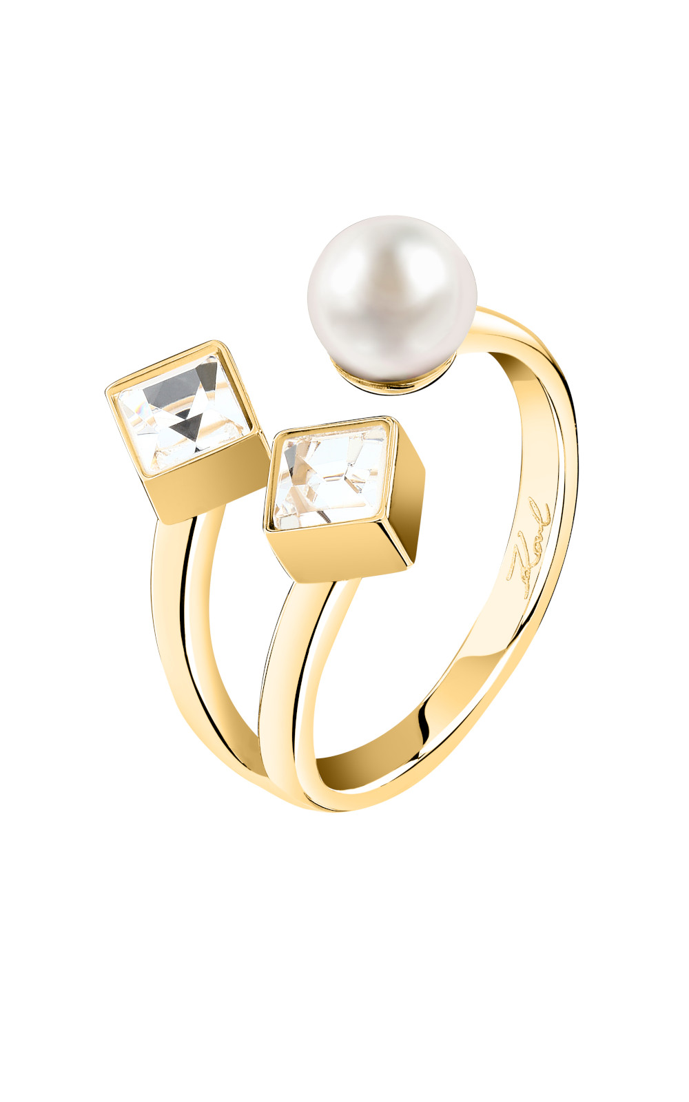 Γυναικείο δαχτυλίδι KARL LAGERFELD PEARL KLAYR230-No.14 χρυσού χρώματος με πέρλα και πέτρες.