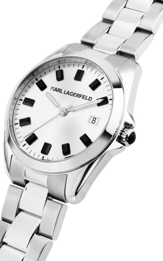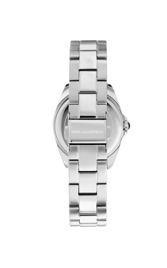 Γυναικείο ρολόι KARL LAGERFELD ROUND ESSENTIALS R0553101514 διαμέτρου 35mm, με μηχανισμό QUARTZ ακριβείας,ασημί καντράν, κάσα και μπρασελέ από ανοξείδωτο ατσάλι.