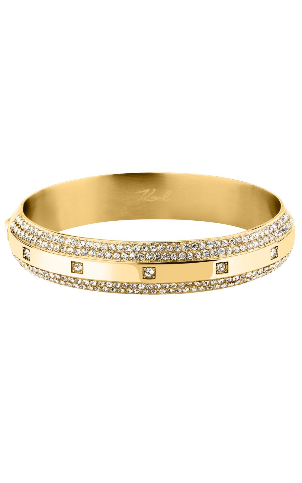 Γυναικείο βραχιόλι KARL LAGERFELD BOND PAVE KLBJY03 χρυσού χρώματος με πέτρες και λογότυπο(6x5cm).