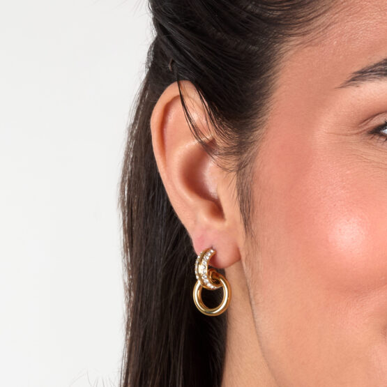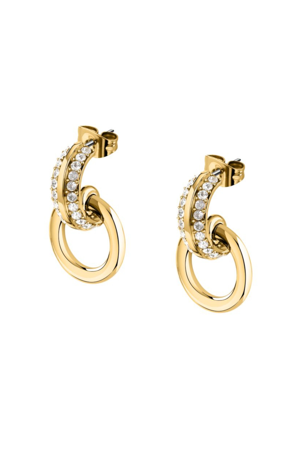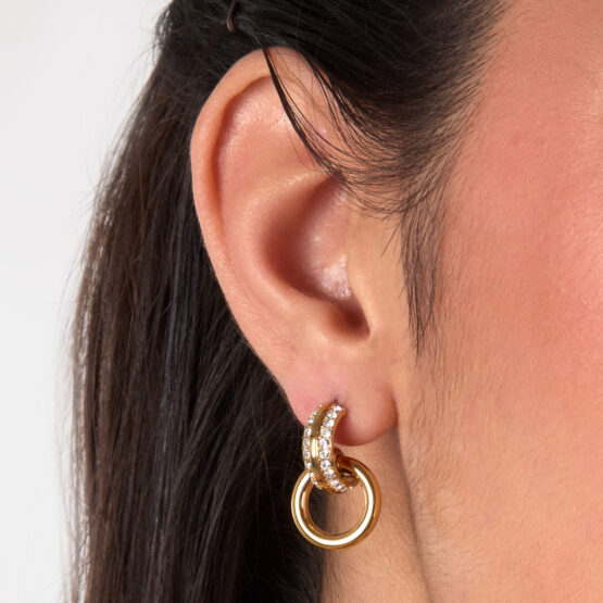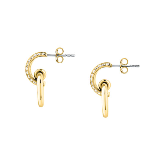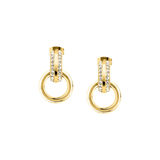 Γυναικεία σκουλαρίκια KARL LAGERFELD χρυσού χρώματος. Είναι κατασκευασμένα από ανοξείδωτο ατσάλι και είναι διακοσμημένα με πέτρες(2,2cm).