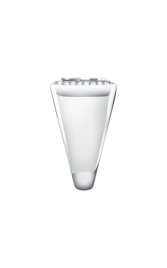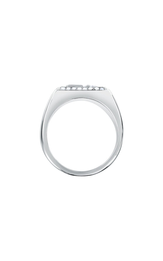 Γυναικείο δαχτυλίδι KARL LAGERFELD CHARMS KLAYD280-No.18 ασημένιου χρώματος με λογότυπο και πέτρες.