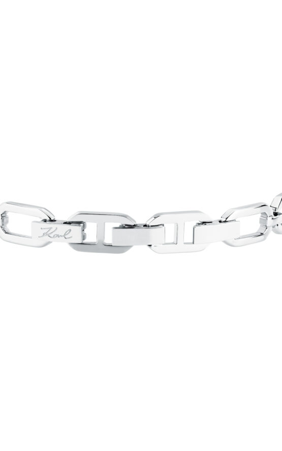 Γυναικείο βραχιόλι KARL LAGERFELD ασημένιου χρώματος με πέτρες. Είναι κατασκευασμένο από ανοξείδωτο ατσάλι και είναι διακοσμημένο με άσπρες πέτρες(16+3cm).