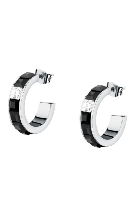 Γυναικεία σκουλαρίκια KARL LAGERFELD CRYSTALS KLAYC37 ασημένιου χρώματος με μαύρες και άσπρες πέτρες(2cm).