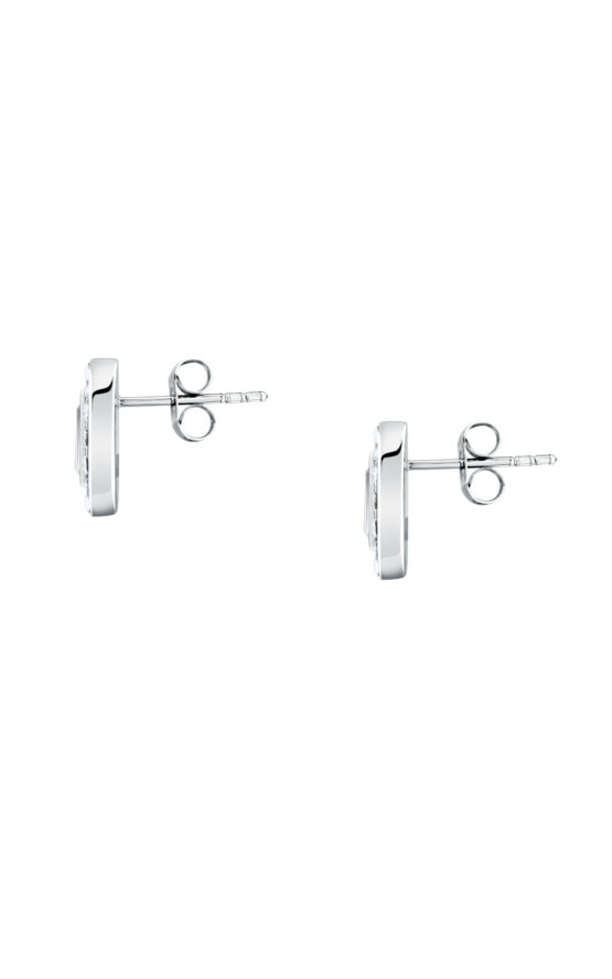 Γυναικεία σκουλαρίκια KARL LAGERFELD ασημένιου χρώματος με πέτρες. Είναι κατασκευασμένο από ανοξείδωτο ατσάλι και είναι διακοσμημένο με άσπρες πέτρες(1,2cm).