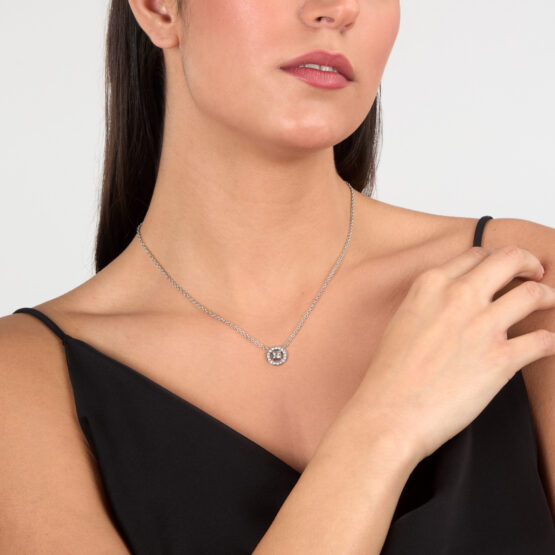 Γυναικείο κολιέ KARL LAGERFELD ILLUME KLBJX05 ασημένιου χρώματος με πέτρες και λογότυπο(40+5cm).