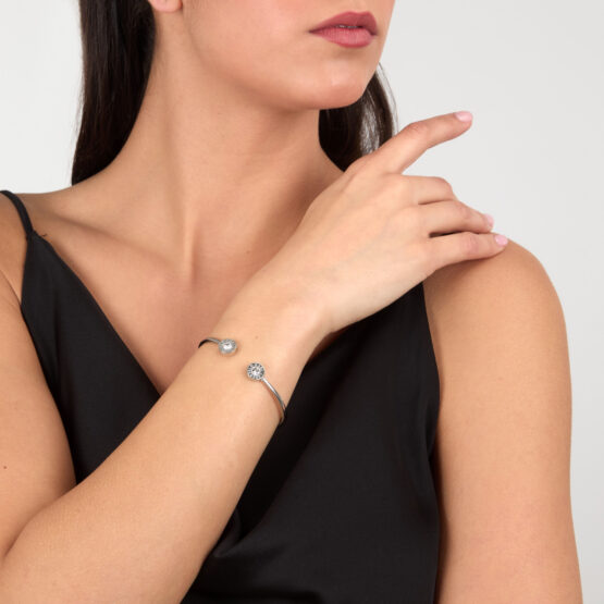 Γυναικείο βραχιόλι KARL LAGERFELD ILLUME KLBJX09 ασημένιου χρώματος με πέτρες και λογότυπα(6x5cm).
