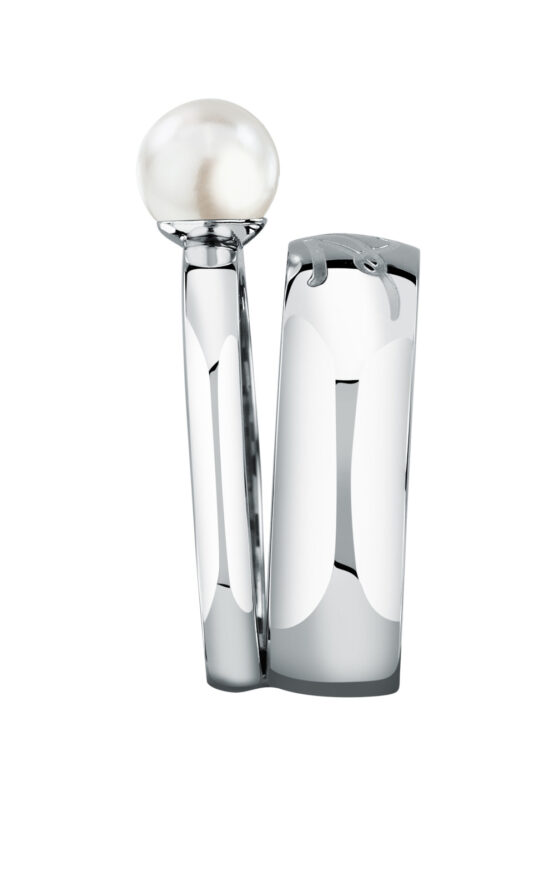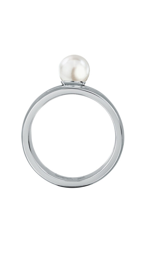 Γυναικείο δαχτυλίδι KARL LAGERFELD PEARL KLAYR110-No.18 ασημένιου χρώματος με πέρλα και λογότυπο.
