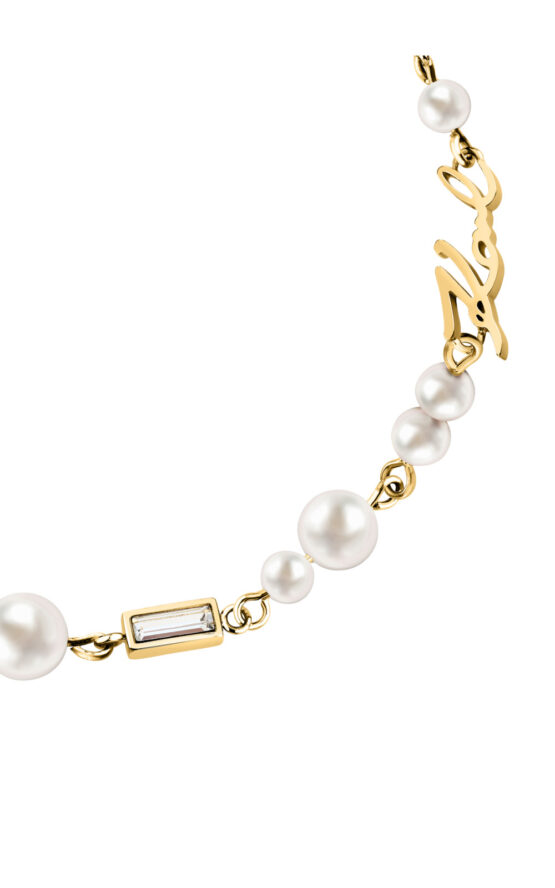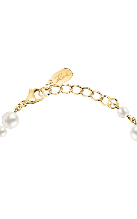 Γυναικείο βραχιόλι KARL LAGERFELD PEARL KLAYR19 χρυσού χρώματος με πέρλες, πέτρες και λογότυπο(17+3cm).