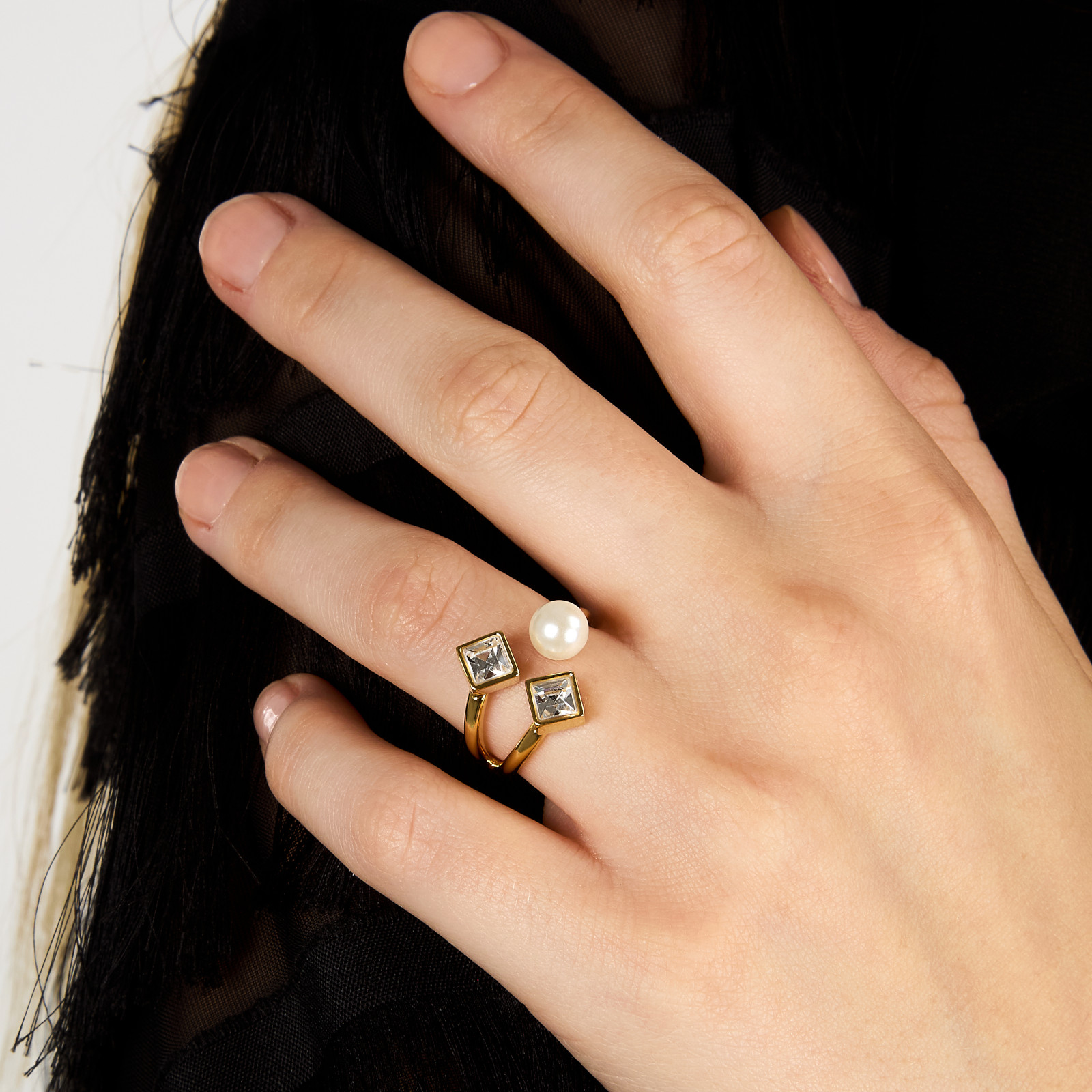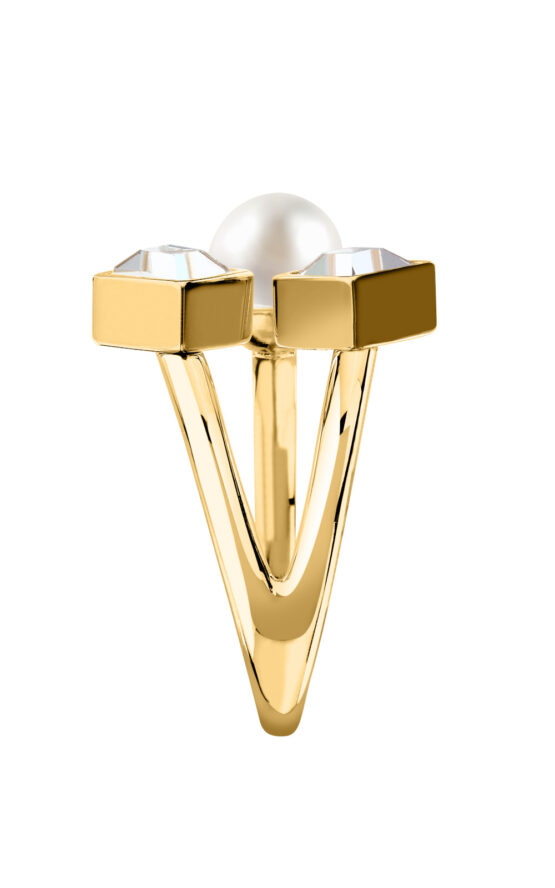 Γυναικείο δαχτυλίδι KARL LAGERFELD PEARL KLAYR230-No.12 χρυσού χρώματος με πέρλα και πέτρες.
