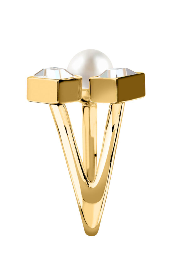 Γυναικείο δαχτυλίδι KARL LAGERFELD PEARL KLAYR230-No.14 χρυσού χρώματος με πέρλα και πέτρες.