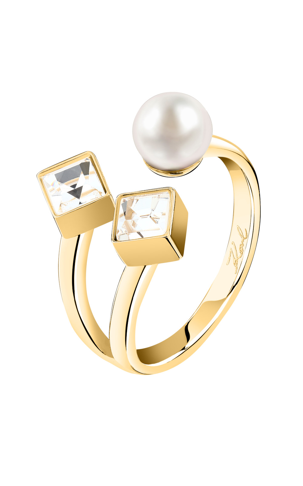Γυναικείο δαχτυλίδι KARL LAGERFELD PEARL KLAYR230-No.18 χρυσού χρώματος με πέρλα και πέτρες.