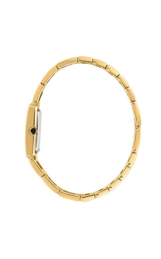 Γυναικείο ρολόι διαμέτρου 21x36mm με μηχανισμό Quartz ακριβείας. Έχει μαύρο καντράν με χρυσούς δείκτες και είναι διακοσμημένο με πέτρες. Η κάσα του είναι από ανοξείδωτο ατσάλι με κρύσταλλο από ορυκτό κρύσταλλο. Έχει μπρασελέ από ανοξείδωτο ατσάλι και κούμπωμα ασφαλείας. Δεν είναι αδιάβροχο.