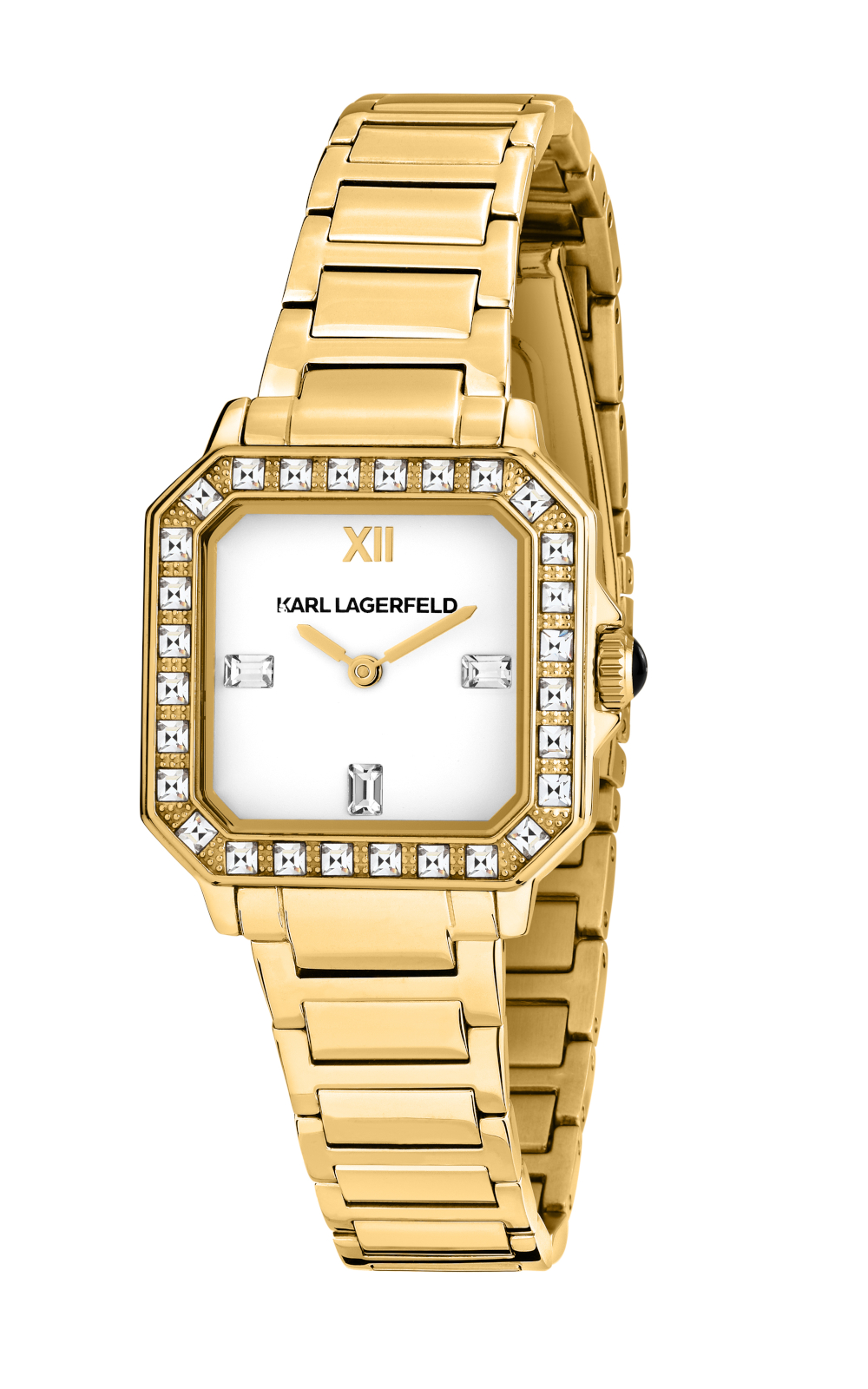 Γυναικείο ρολόι KARL LAGERFELD SQUARE CLASSICS R0553102501 διαμέτρου 33X27,8mm, με μηχανισμό QUARTZ ακριβείας, λευκό καντράν, κάσα και μπρασελέ από ανοξείδωτο ατσάλι.